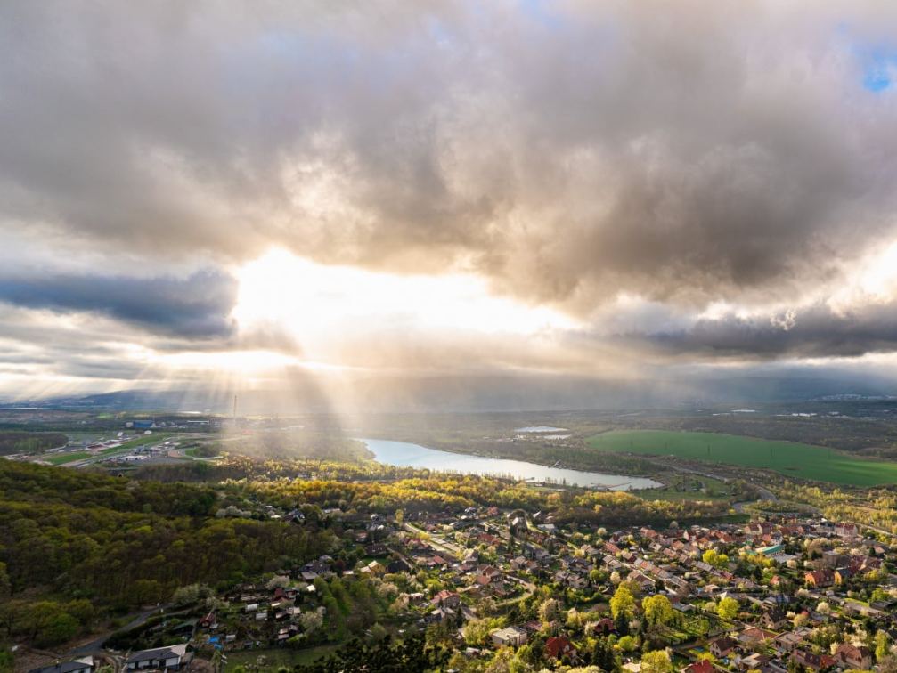 Most, Ústecký kraj – Včerejší proměnlivé počasí, které se přehnalo přes celý Ústecký kraj, připravilo obyvatelům severních Čech nevídanou podívanou. Zatímco na mnoha místech se střídal déšť s bouřkovými mračny, milovníci krajinné fotografie měli žně. Jedním z těch, kteří dokázali zachytit syrovou krásu našeho regionu, je fotograf Rastislav Michalko. Jeho aktuální snímek z ochozů hradu Hněvín, na kterém sluneční paprsky jako reflektor osvětlují vodní nádrž Matyldu uprostřed dramatických mračen, se okamžitě stal hitem mezi patrioty z celého kraje.