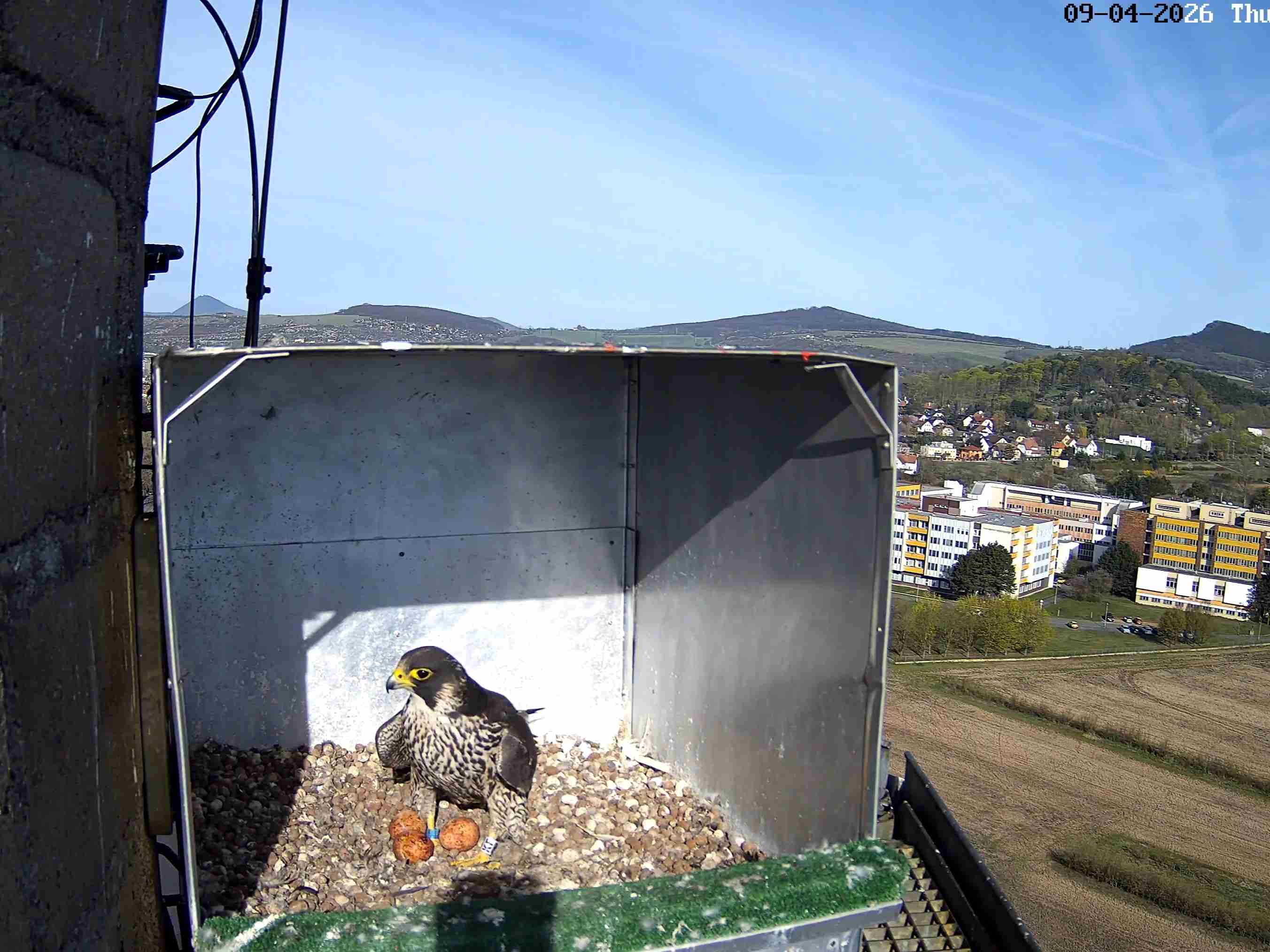 Litoměřice - Komín litoměřické výtopny se stal domovem vzácných dravců. Ve speciální budce umístěné na ochozu komína zahnízdil pár sokolů stěhovavých. Díky webkameře, kterou společnost ENERGIE Holding nechala k budce instalovat, je možné hnízdící pár sledovat on-line prostřednictvím tohoto odkazu.