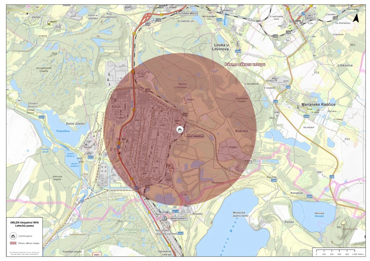 Policie v době zásahu rozšíří bezpečnostní perimetr i na silnici I/27 mezi Mostem a Litvínovem. Bude zde zastaven provoz, včetně MHD.