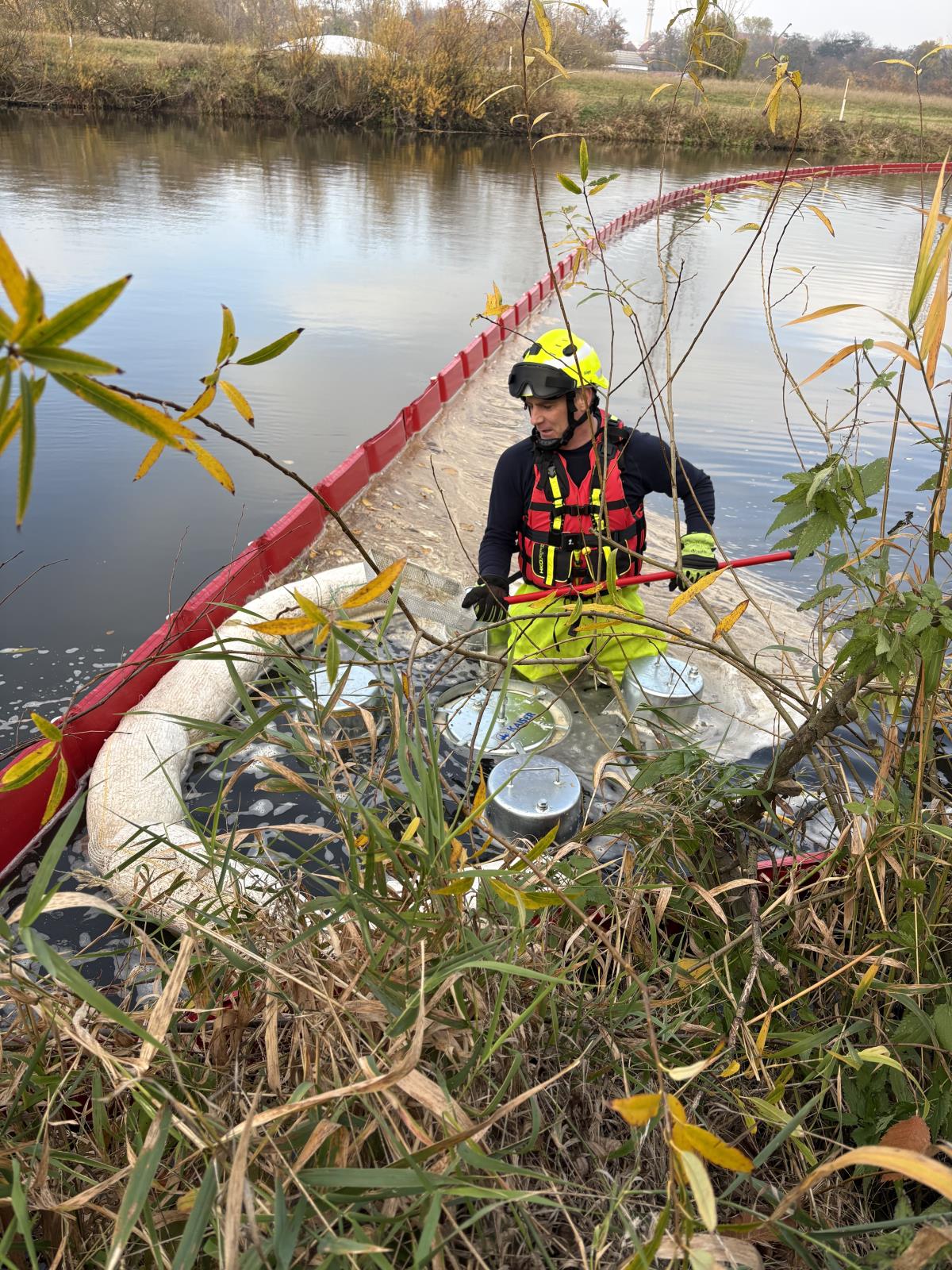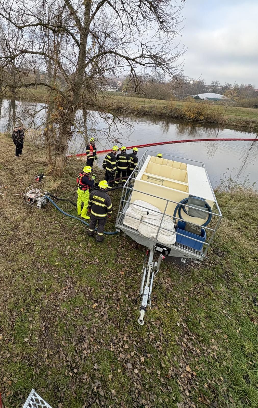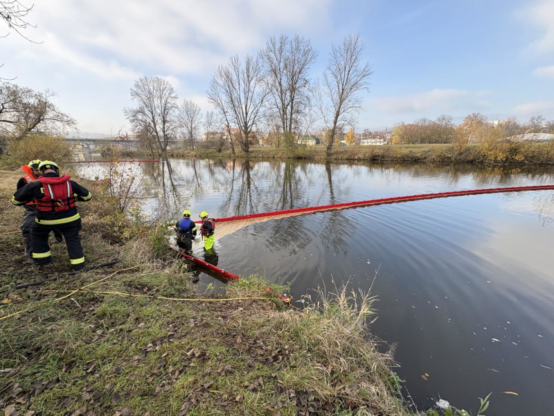 Litoměřice - Jak postupovat při rozsáhlém úniku ropné látky na hladinu řeky? Právě takovou situaci cvičně řešili hasiči v Litoměřicích.