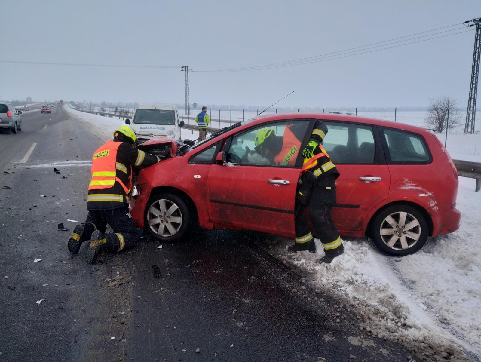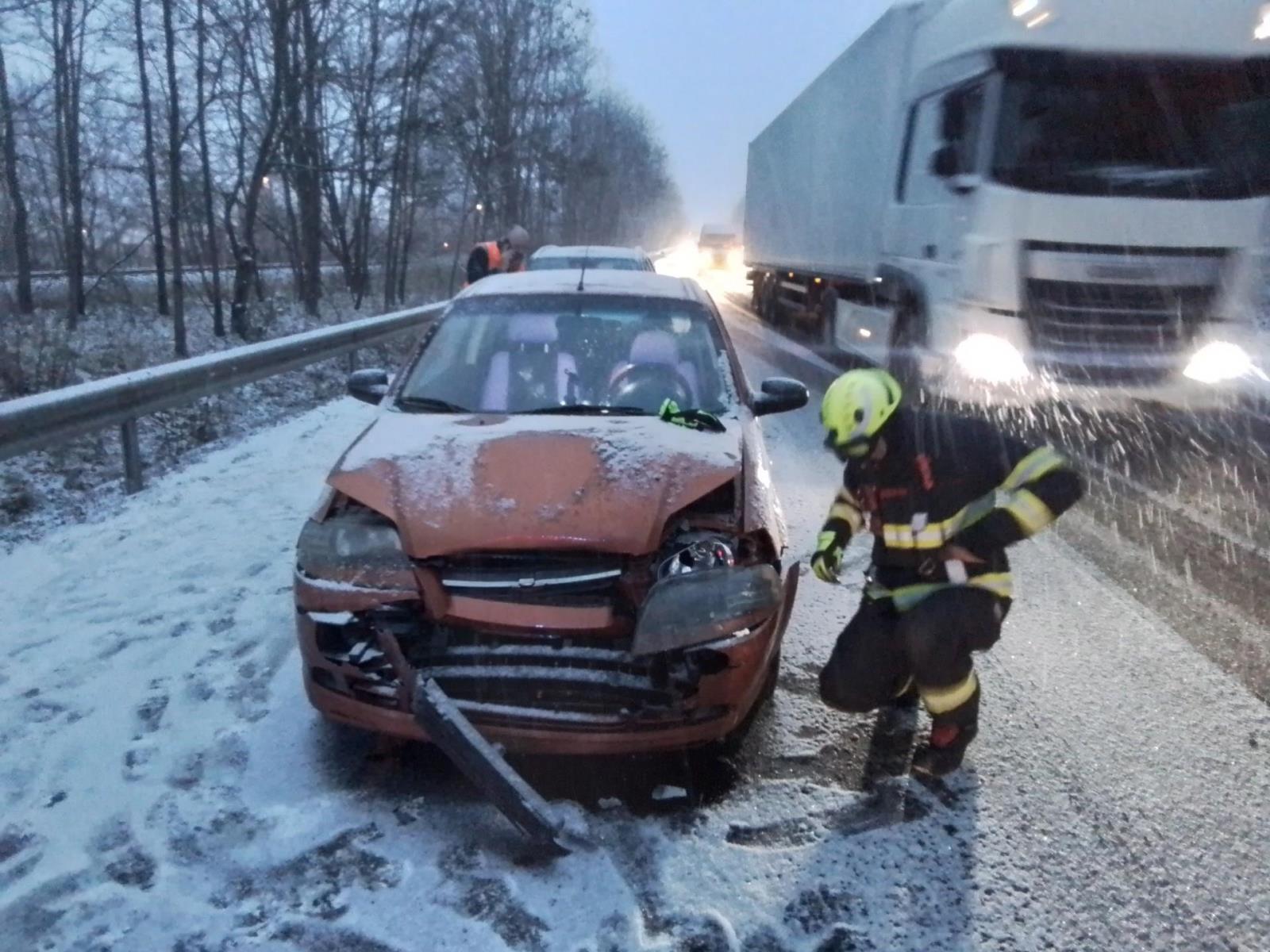 V Libouchci na Ústecku se srazila dvě auta. V Křimově na Chomutovsku narazilo auto do závor. V Kerharticích na Děčínsku narazil nákladní vůz do stromu. V Teplicích bourala tři auta a v Kadani vyjelo auto do škarpy. Naštěstí se vše obešlo bez zranění.