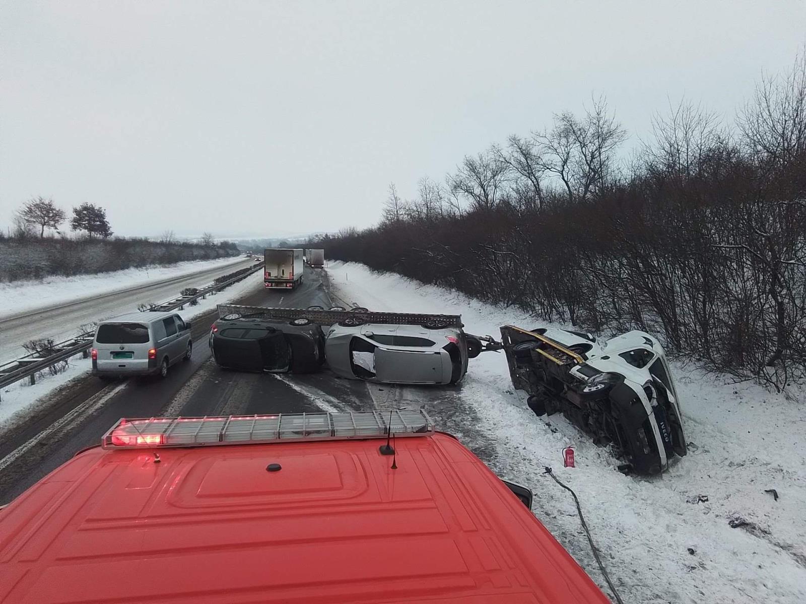 U Brozan nad Ohří na Litoměřicku se na dálnici D8 převrátila dodávka s vlekem. Dálnice byla průjezdná jedním pruhem.