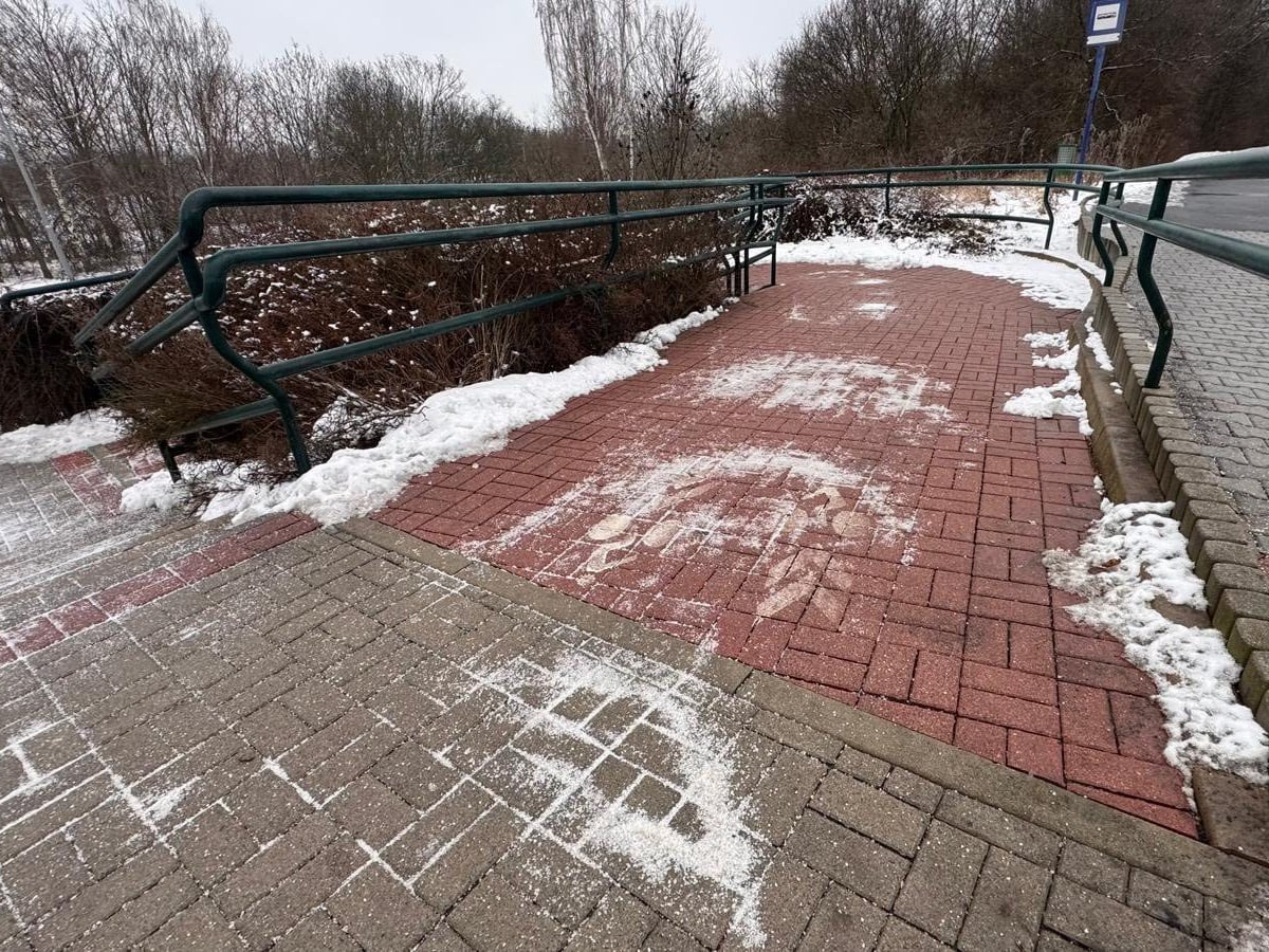 Bez soli se stávají některé chodníky ve stoupání doslova pastí. Technické služby města Mostu čeká další náročný den, aby stihly prosolit co nejvíc pochůzných ploch. Foto: město Most