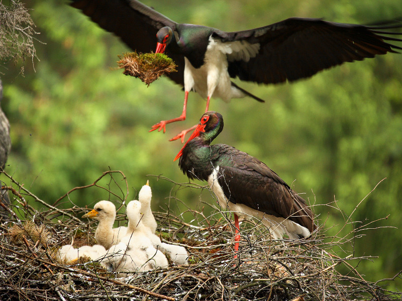 Plaší čápi černí na skalním hnízdě v Českém Švýcarsku. Při vyrušení nemohou zahřívat vajíčka, chránit svá mláďata před chladem nebo predátory, nebo je nakrmit. Foto: Václav Sojka